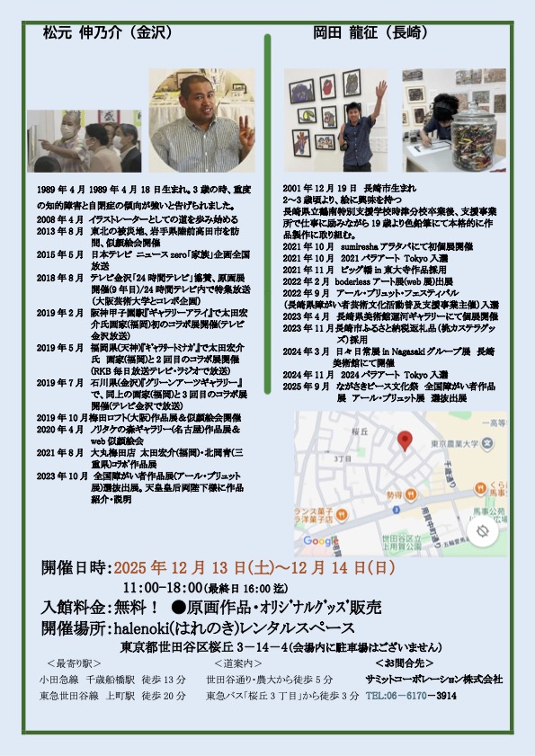 松元伸乃介さんと岡田龍征さんの原画作品・オリジナルグッズ販売会を行います